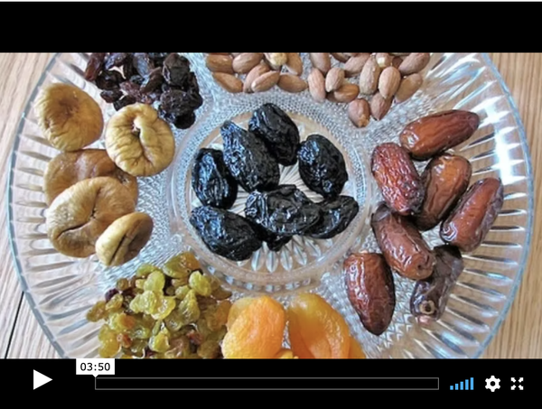 Banner Image: The dried fruits of the Tu B’Shavat Seder symbolize the Divine in the humblest representations of the four elements: Assiyah (earth) by fruits or nuts with an outer shell; Yetzirah (water) by fruits with pits; Briyah (air) by fruit that is entirely edible; Atzilut (fire) by aromatic things such as resins or spices. Credit: Gilabrand via Wikimedia Commons.