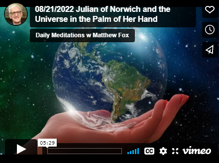 | To view today's video, please click the image. You will be taken to today's post on the Daily Meditations with Matthew Fox website, where you can see the meditation in a larger version and also view and post your Comments. In the sharing that follows, a kind of community is developing around the DM. If you can't reach Matthew's video on the website, try his Vimeo channel HERE. |