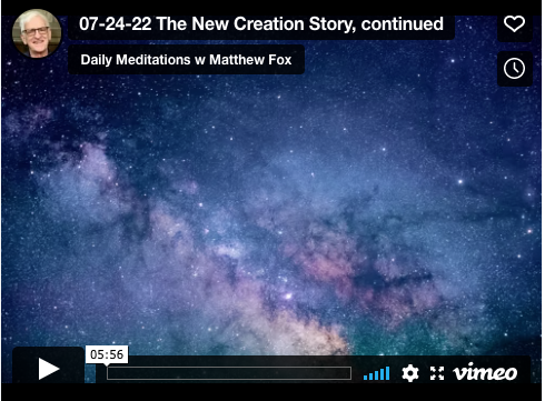 | To view today's video, please click the image. You will be taken to today's post on the Daily Meditations with Matthew Fox website, where you can see the meditation in a larger version and also view and post your Comments. In the sharing that follows, a kind of community is developing around the DM.