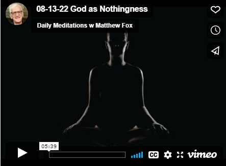 | To view today's video, please click the image. You will be taken to today's post on the Daily Meditations with Matthew Fox website, where you can see the meditation in a larger version and also view and post your Comments. In the sharing that follows, a kind of community is developing around the DM.
