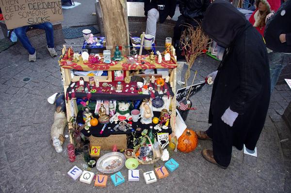 Adapted from Adam Bucko and Matthew Fox, Occupy Spirituality: A Radical Vision for a New Generation, pp. 207f. See also Matthew Fox, Prayer: A Radical Response to Life, pp. 60-116, 154. See also Adam Bucko, Let Your Heartbreak Be Your Guide: Lessons in Engaged Contemplation (Maryknoll, NY: Orbis Books, 2022) Banner Image: Communal altar, Occupy Wall Street November 5 2011, Zuccotti Park. Photo by David Shankbone on Flickr. |