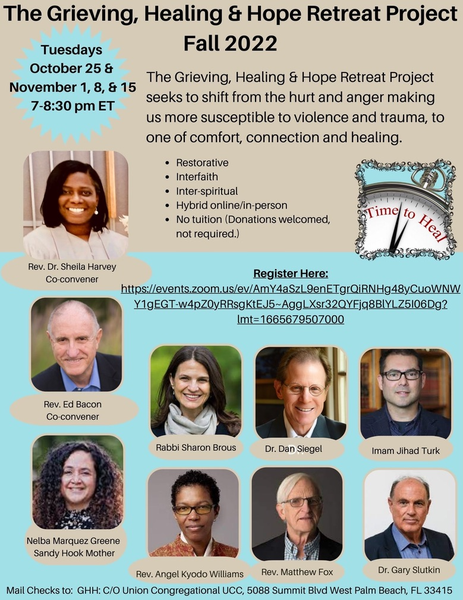 | Join Matthew Fox and other prominent leaders in The Grieving, Healing & Hope Retreat Project, Fall 2022, seeking to shift from the hurt and anger making us more susceptible to violence and trauma, to comfort, connection and healing. Tuesdays Oct 25 - Nov 15, 2022. Register HERE Note: This is a FREE