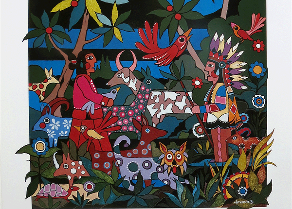 Image: The Divine embodied in all beings, in harmony: “Garden of Eden.” Detail of a painting by David Paladin. Published with permission. |