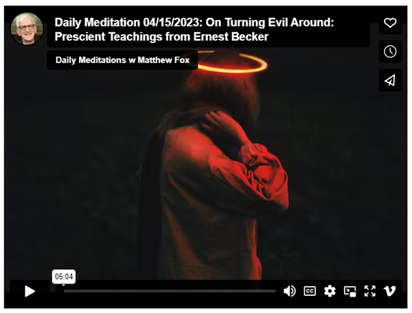 | To view today's video, please click the image. You will be taken to today's post on the Daily Meditations with Matthew Fox website, where you can see the meditation in a larger version and also view and post your Comments. In the sharing that follows, a kind of community is developing around the DM. If