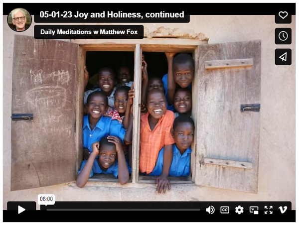 | To view today's video, please click the image. You will be taken to today's post on the Daily Meditations with Matthew Fox website, where you can see the meditation in a larger version and also view and post your Comments. In the sharing that follows, a kind of community is developing around the DM. If