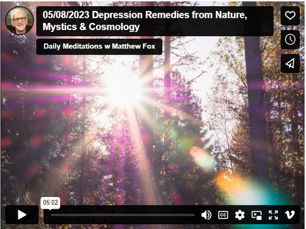 | To view today's video, please click the image. You will be taken to today's post on the Daily Meditations with Matthew Fox website, where you can see the meditation in a larger version and also view and post your Comments. In the sharing that follows, a kind of community is developing around the DM. If