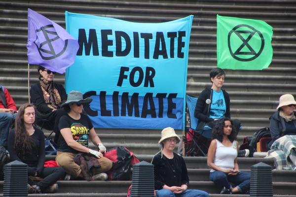 steps of the Victorian Parliament. Part of the 2019 Spring Rebellion by Extinction Rebellion in Melbourne. Photo by John Englart on Flickr. |