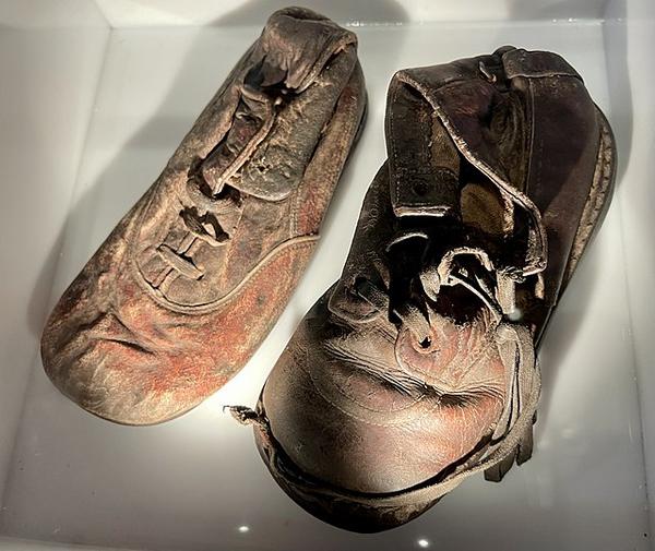 hatred of the Jews became institutionalized in death camps. Was fascism’s appeal built on its very institutionalized hate, fear and resentment? | “Children’s shoes after victims killed in the Auschwitz concentration camp ( extermination camp, death camp)” on display in Oslo, Norway, on loan from the Auschwitz-Birkenau State Museum. Wikimedia Commons. |