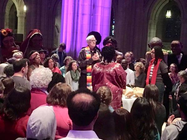 Matthew Fox joins ministers across traditions to celebrate the Eucharist at a Cosmic Mass. Photo by Katy Gaughan, National Cathedral. Published with