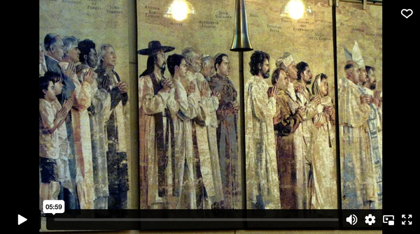 Adapted from Matthew Fox, “Meister Eckhart and Karl Marx: The Mystic as Political Theologian,” in Fox, Wrestling with the Prophets, pp. 165-198. Banner Image: “Communion of Saints tapestry, Los Angeles Cathedral. This is part of the fresco-like Communion of Saints along the north wall of the nave. Twenty-five fresco-like tapestries depict 135 saints and blesseds from around the world, including holy men and women of North America canonized by the Church.” Photo by Barbara Hartford/James Strong on Flickr. |
