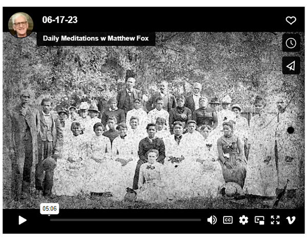 | To view today's video, please click the image. You will be taken to today's post on the Daily Meditations with Matthew Fox website, where you can see the meditation in a larger version and also view and post your Comments. In the sharing that follows, a kind of community is developing around the DM. If
