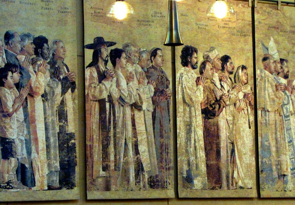"Communion of Saints tapestry, Los Angeles Cathedral… (depicting) 135 saints and blesseds from around the world, including holy men and women of North America canonized by the Church.” Photo by Barbara Hartford/James Strong on