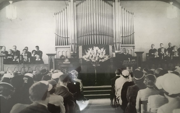Dr. Howard Thurman in the pulpit during a service at The Church for the Fellowship of All Peoples, circa 1950. Source: The Church for the Fellowship of All Peoples, by permission. |