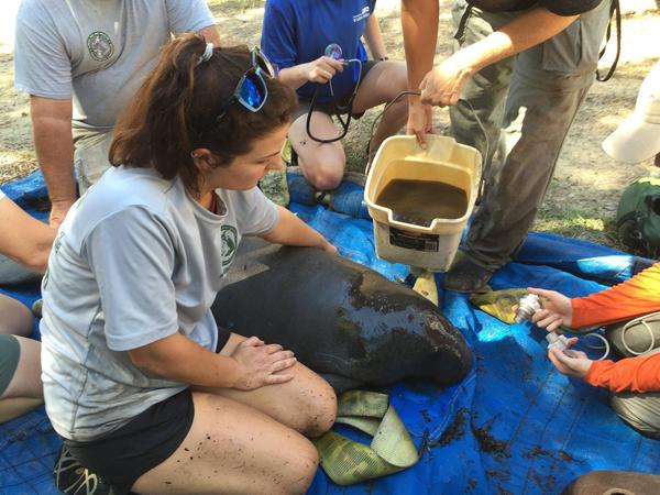 Banner Image: A rescued manatee calf receives hydration and oxygen, 2016. Photo by Florida Fish and Wildlife on Flickr. |