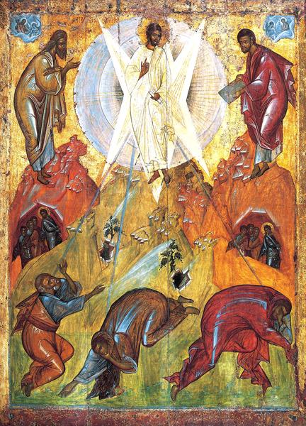 guilt and shame and diminishing of the self into religion. A fall/redemption tradition that ignores the cosmos can readily exaggerate individual sinfulness while often ignoring societal injustices and evil itself. | Transfiguration as human theosis: rays of Jesus’ glory touching his apostles. Russian Orthodox icon by Dionisius, 15th century, Tretyakov Gallery,
