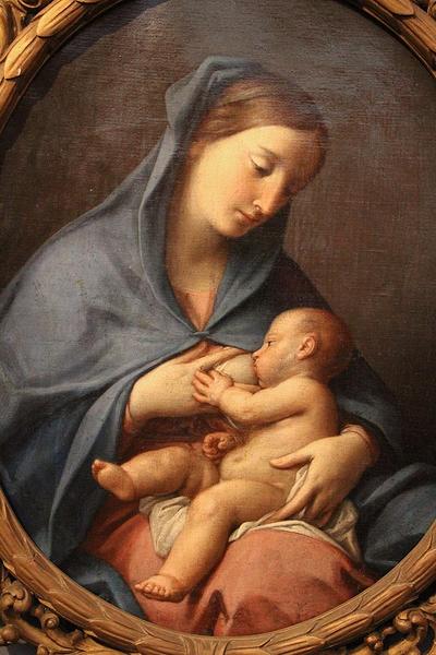 The intimacy of incarnation: “Madonna Breastfeeding the Child.” Painting by Pompeo Batoni, c. 1770. Museo de Arte de São Paulo, on Wikimedia Commons. |
