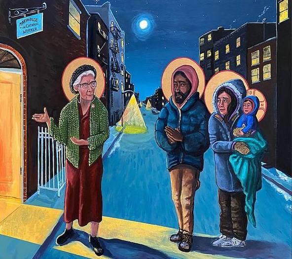 “Dorothy Day and the Holy Family of the Streets.” Painting by iconographer Kelly Latimore. Published with permission; to purchase, click HERE. |