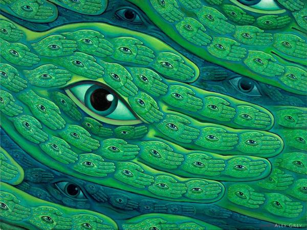 “The Green Hand,” a painting by Alex Grey in homage to Hildegard’s concept of Viriditas. Published with permission. |