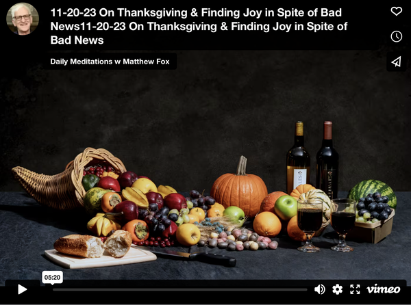 | To view today's video, please click the image. You will be taken to today's post on the Daily Meditations with Matthew Fox website, where you can see the