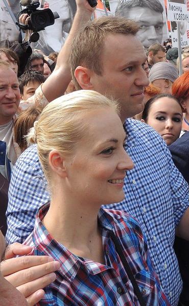 Alexei Navalny with his wife Yulia at a Moscow rally, 2013. Yulia Navalnaya has vowed to carry on her husband’s work. Wikimedia Commons. | Courage is from two French words, a large