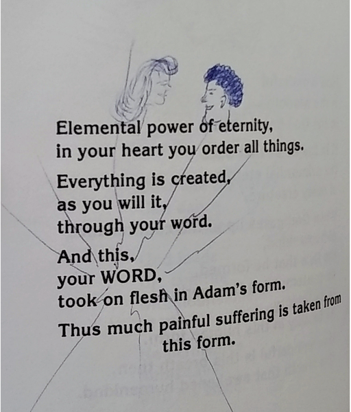 One of Sister Dorothy’s playful drawings in her book Meditations with Hildegard of Bingen, authored by ICCS student Gabrielle Uhlein. Used with permission. |