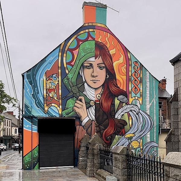 Mural depicting Brigid as both goddess and saint, Dundalk, County Louth. Wikimedia