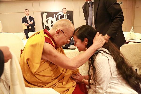 The 14th Dalai Lama greets Uzra Zeya, India’s Undersecretary of State, in 2023. Photo by the U.S. Embassy in New Delhi. Wikimedia Commons. |
