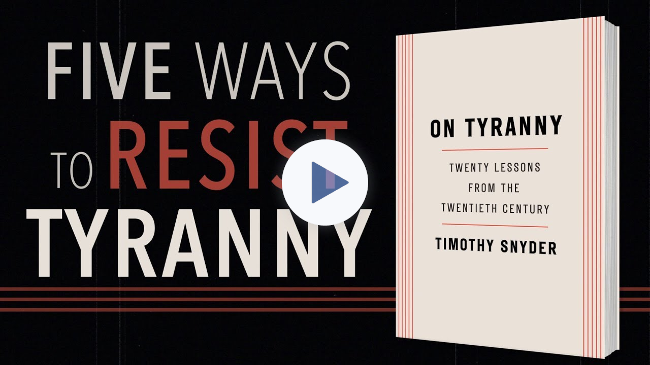 | Historian Timothy Snyder warns us of that danger in his iconic book, On Tyranny: Twenty Lessons From the Twentieth Century, where he says we must defend institutions... We tend to assume that institutions will automatically maintain themselves against even the
