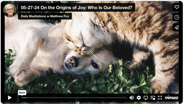 image. You will be taken to today's post on the Daily Meditations with Matthew Fox website, where you can see the meditation in a larger version and also view and post your Comments. In the sharing that follows, a kind of community is developing around the DM. If you can't reach today's post on the website directly, click HERE. If you can't reach Matthew's video on the website, try his Vimeo channel HERE. |