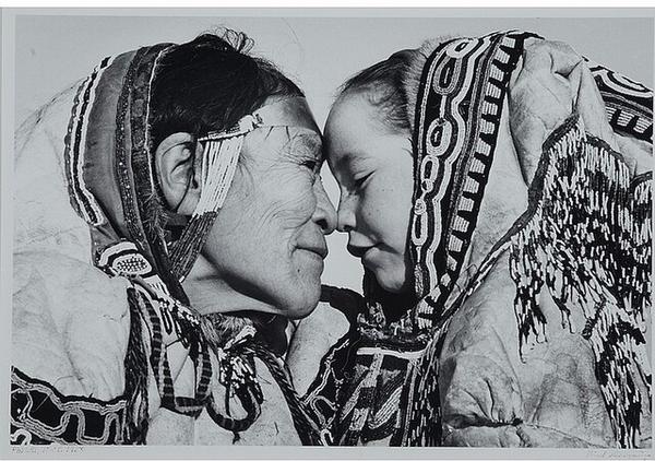 “Inuit Kunik” — Mother and child rubbing noses, Padlei, NWT, 1950. Photograph by Richard Harrington. Wikimedia