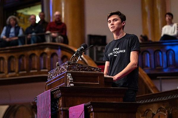 David Hogg, a survivor of the school shooting in Parkland, Florida, speaking against gun violence at the Westminster Town Hall Forum in Minneapolis. Photo by Lorie Shaull, Wikimedia Commons. | Their mission is to elect young progressives to Congress and State Legislatures across the country to help defeat the far-right agenda and advance a progressive