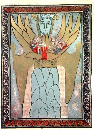 “Sophia: Mother Wisdom, Mother Church.” Manuscript illumination from Scivias (Know the Ways) by Hildegard of Bingen (Disibodenberg:1151). |