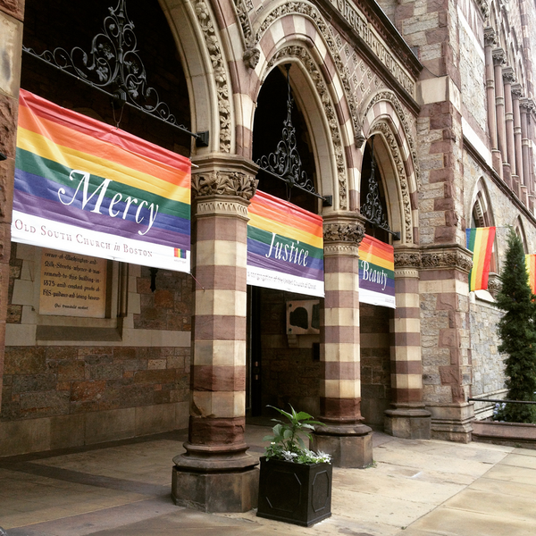 Banner Image: Mercy, Justice, Beauty – LGBTQ+ banners at Old South Church, Boston, MA, USA. Photo by Jonathan Deamer on Wikimedia Commons. |