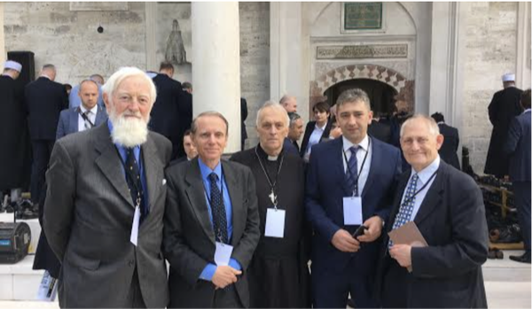 Donald Reeves and partners with The Soul of Europe mark the reconstruction of the Ferhadija Mosque in Banja Luka, Bosnia. Photo from the Soul of Europe website. |