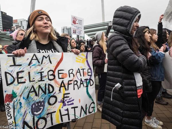 “I am Deliberate and Afraid of Nothing.” A marcher quotes Audre Lorde at the 2018 Vancouver Women’s March. Photo by Sally T. Buck on Flickr. |