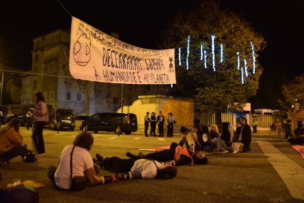 Banner Image: “Governments and Corporations Declare War on the Planet and Humanity.” Climate activists set up a blockade in a Lisbon, Portugal square, 11/23/2024, before a 300-person march titled “Stopping While We Can.” Photo by Lua Eva Blue on Flickr. | A Caring