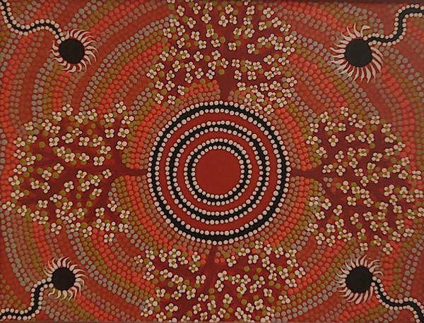 “Wild Oranges” by Clarabelle Swift of the Arande Tribe, Alice Springs, Australia. Original painting gifted to Matthew Fox. | I am a child of the Dreamtime People Part of the Land, like the gnarled gumtree I am the river, softly