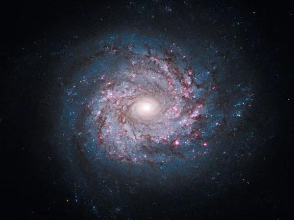 Light within a field of darkness. The winding arms of the spiral galaxy called NGC 3982 are lined with pink star-forming regions of glowing hydrogen, newborn blue star clusters, obscuring dust lanes that provide the raw material for future generations of stars. Credit: NASA, ESA, and the Hubble Heritage Team (STScI/AURA) |