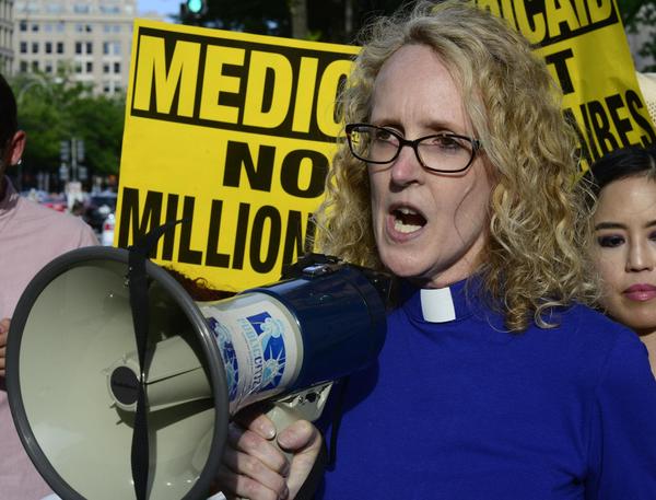 “Medicaid Not Millionaires” – a minister speaks at an protest outside of the Trump International Hotel in DC, 2017. Photo by Stephen Melkisethian on Flickr. | In times like these we are all called to interfere. For many today, our times feel like the apocalypse is upon us: whether we are talking about climate change and the demise of our planet; or war; or nuclear war; or the rise of fascism and oligarchy and billionaires buying their influence on the unSupreme Court; or their ownership
