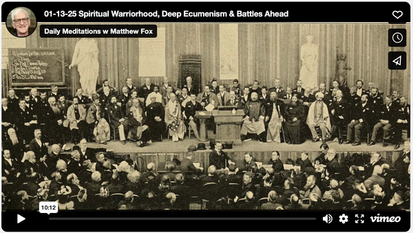 Join the Creation Spirituality Communities Education service as they host guest speaker Matthew Fox in an overview of Deep Ecumenism and its relevance today in the first class of a course, “Deep Ecumenism: Exploring Spiritual Identity” by Instructor Roxanne Whitelight. Matthew Fox’s lecture: Jan 15 - 4:00pm PT Course runs Wednesdays, January 15– February 19, 2025. Register HERE.