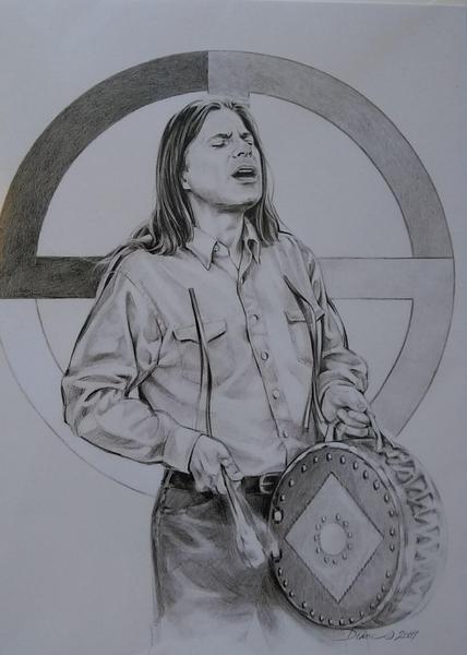 “Singing Spiritual Warrior” Drawing gifted to Matthew Fox. |