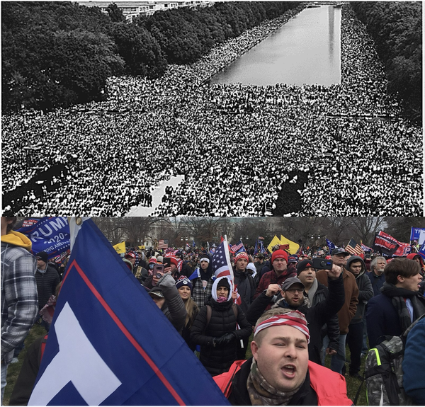 Also today, on Martin Luther King's holiday, another public event is going on in the nation’s capital in the very space that was desecrated four years ago on January 6, by a mob bent on tearing down American democracy and its national ritual of a peaceful transfer of power to a newly-elected president. An irony indeed that the crowd on that day chose violence as its method, pummeled police and tried its best to kidnap elected representatives, including the speaker of the House and the vice president with chants like “Hang Mike Pence.” Fifteen hundred of them are now in prison, but have been promised a release by a new administration taking the oath of office in the very same place. And one whom the record shows was clearly responsible for the violence that