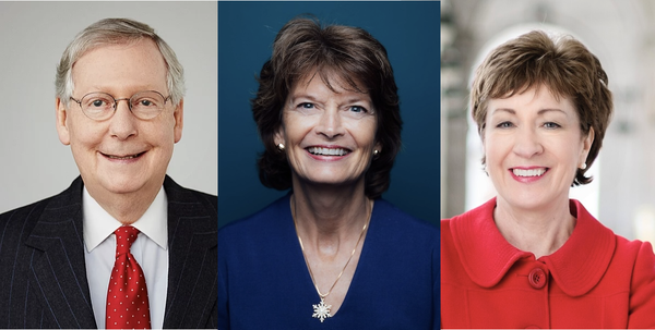 Senators Mitch McConnell (KY), Lisa Murkowski (AK), and Susan Collins (ME), the only three Republicans to vote against the approval of Pete Hegseth as defense secretary, forcing a vice-presidential tie-breaker vote. Official photos from Wikipedia. |