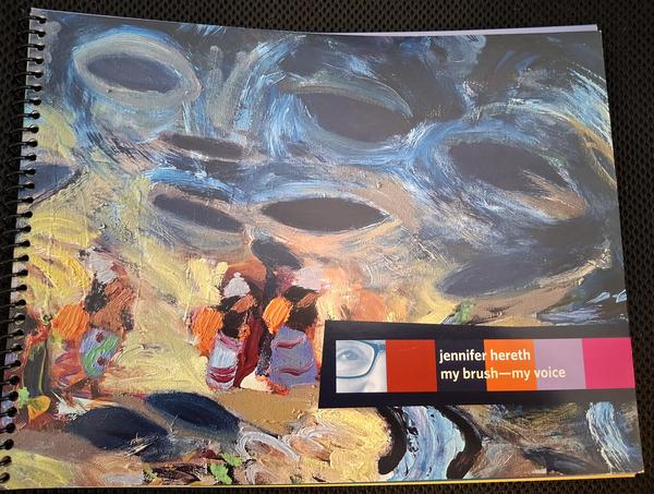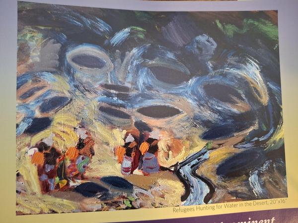 Banner Image: The cover of my brush—my voice by Jennifer Hereth: "Refugees Hunting for Water in the Desert." Used with permission of the artist. |