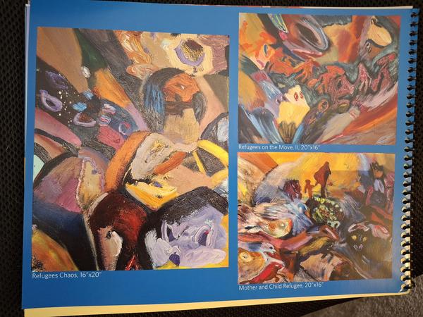 “Refugees Chaos,” “Refugees on the Move II,” and “Mother and Child Refugee,” by Jennifer Hereth. From her website. |