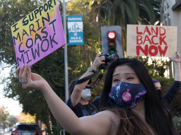 Banner Image: Indigenous People’s Day, 2020, Mission San Rafael Arcángel: local Coast Miwoks and allies rallied in front of the statue of Junípero Serra at Saint Raphael’s Catholic Church in Marin County, CA, calling for the removal of the statue and acknowledgment of Serra’s brutal legacy. Photo by Peg