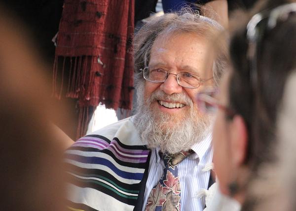 Rabbi Michael Lerner in the Interfaith Coalition tent at Occupy Oakland, 2011. Photo by B. Harford J. Strong. Wikimedia Commons.