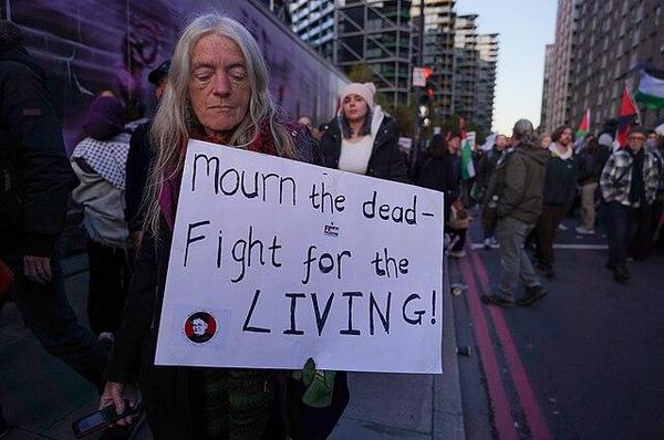 Banner image: “Mourn the Dead, Fight for the Living.” Between 300,000 and 800,000 protested in London in November 2023. Photo by Alisdare Hickson. Wikimedia
