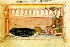 Dominic is portrayed by the sources as a constant pray-er. His “nine ways of prayer” are presented in one 13th-century booklet collecting the testimonies of eye witnesses. And all such nine ways are concerned with the body. Dominic bowed profoundly before the time of prayer, and before the image of the crucified Jesus, and at each mention of the Holy Trinity, in order to learn humility not with his mind, but with his body. |