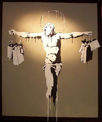 consumerism. Painting by Banksy. Photo by Reubeniz on Flickr. |